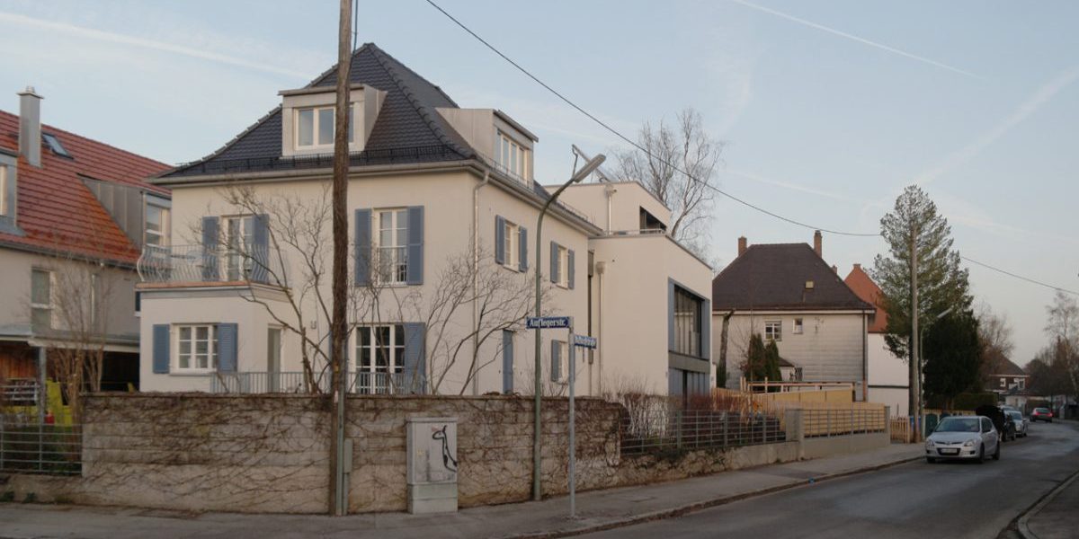 Die vorhandene Bebauung in München, Ramersdorf, in Form einer sogenannten „Kaffeemühle“, – eines für den Stadtteil typischen kleinen, kubischen Mehrfamilienhauses – sollte aus historischen Gründen erhalten bleiben.