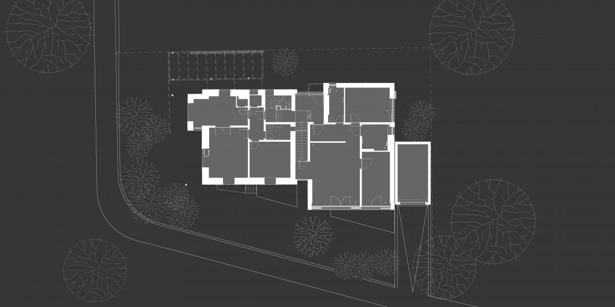 Die Lage des auf dem Grundstück vorhandenen Gebäudes ermöglichte eine ergänzende Bebauung auf der Ostseite. Diese wurde als separates Gebäude an den Bestand angeschlossen.