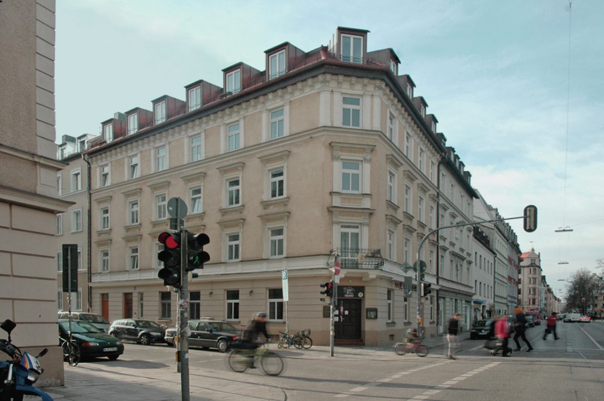 Das mehrgeschossige Gebäude in der Maxvorstadt wurde 1886 als Blockrandbebauung an der Ecke Schleißheimer-/Heßstraße errichtet. Das Gebäude steht unter Denkmalschutz.