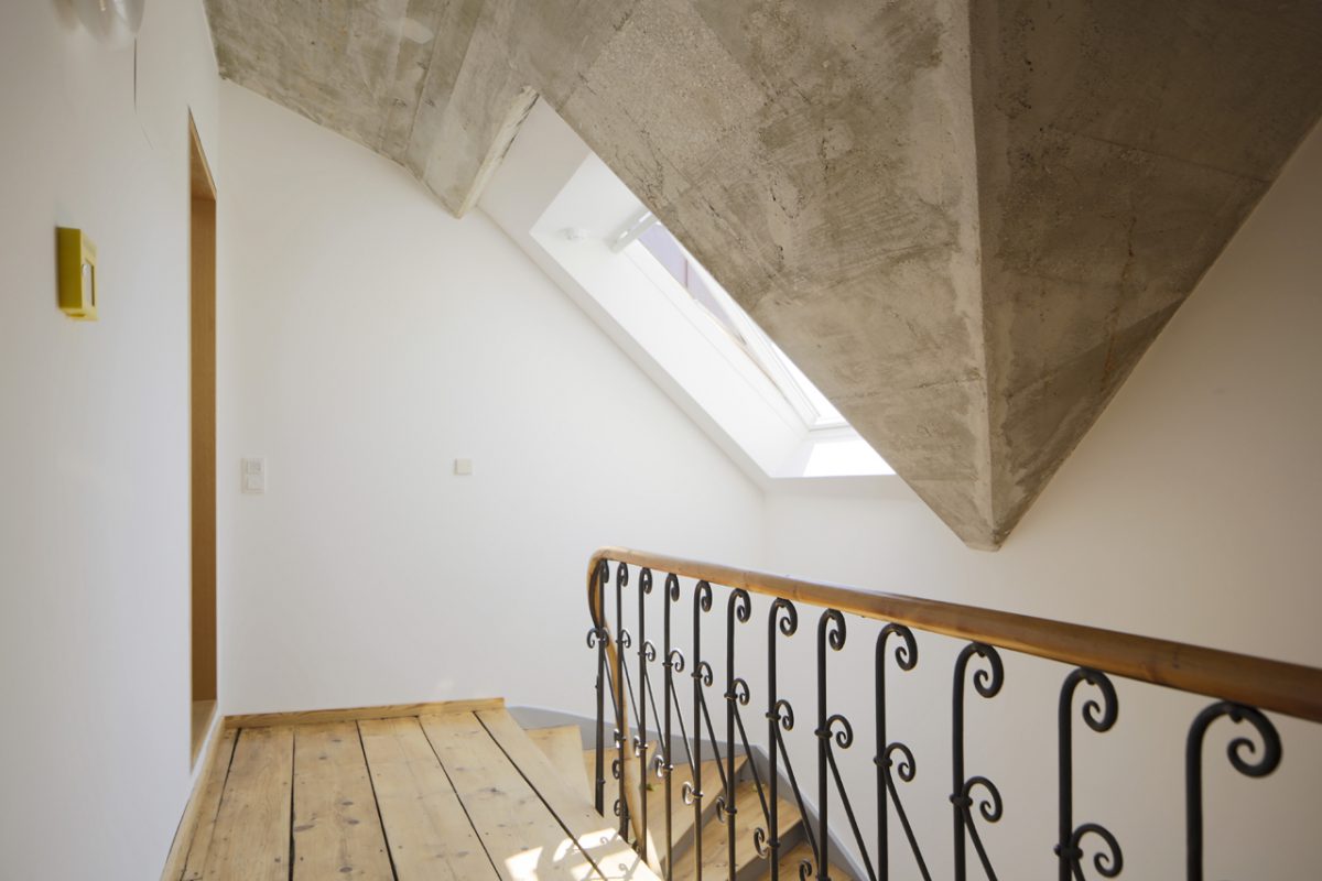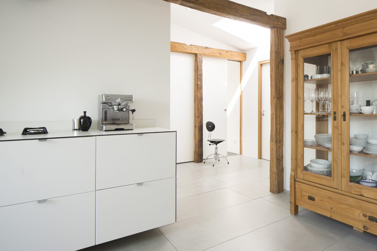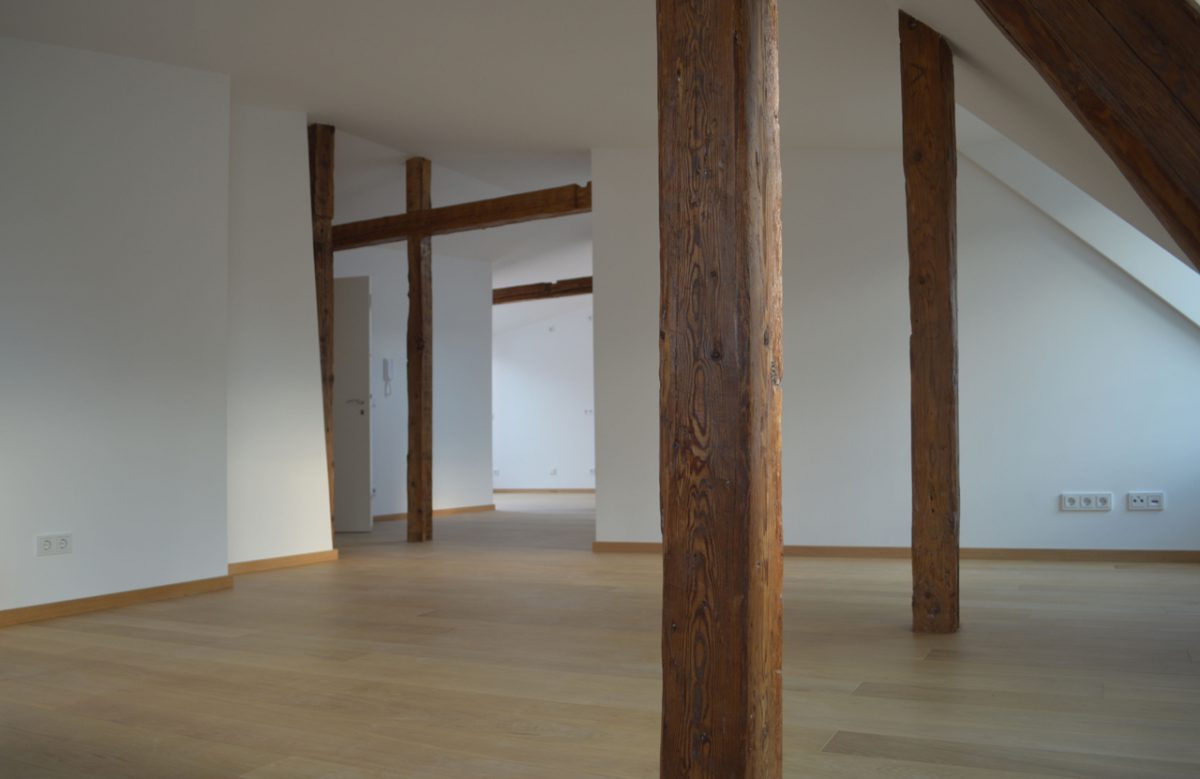 Im vormals als Trockenspeicher genutzten Dachgeschoß wurden zwei neue Wohneinheiten in Niedrigenergiebauweise errichtet, welche den KfW70-Standard erreichen.